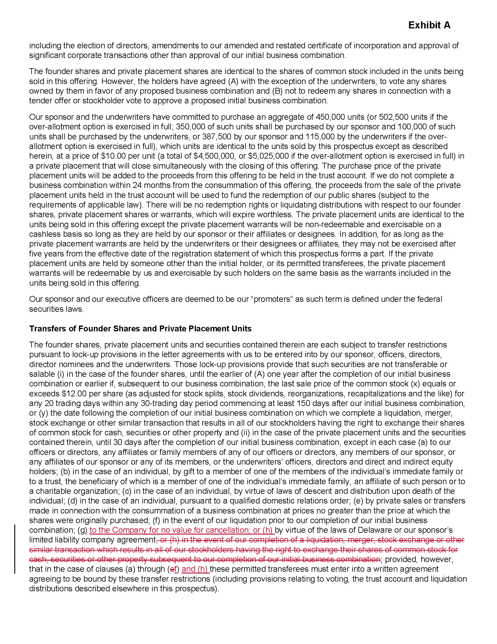 Transfer of Founder Shares and Private Placement Units, page 104