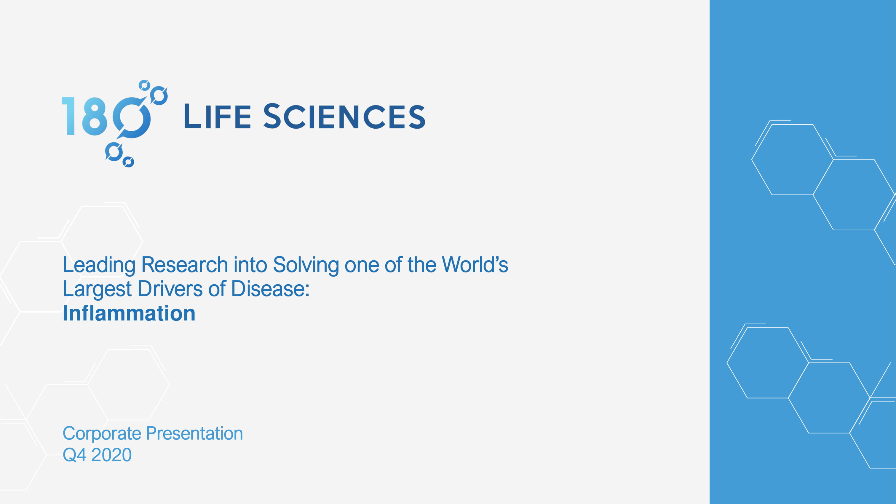 Corporate Presentation Q4 2020 Leading Research into Solving one of the World’s Largest Drivers of Disease: Inflammation