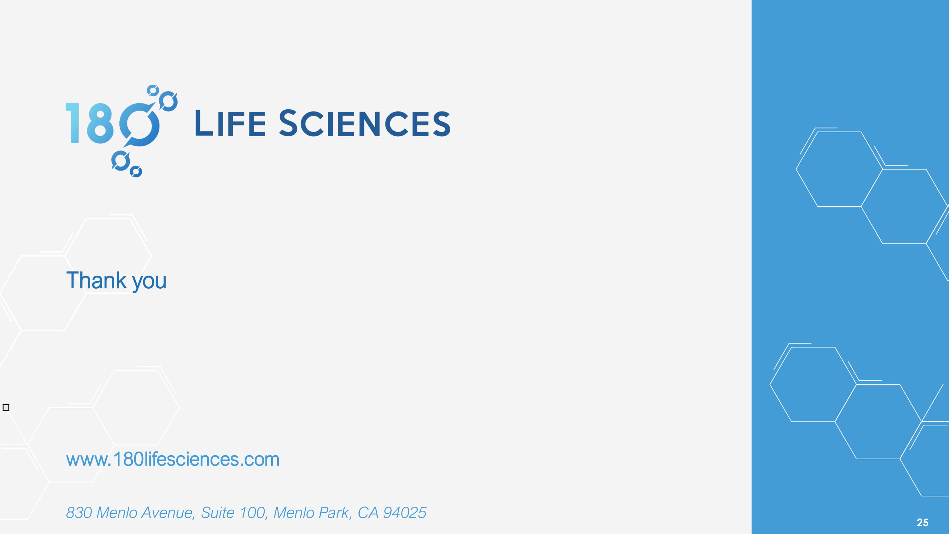 www.180lifesciences.com 830 Menlo Avenue, Suite 100, Menlo Park, CA 94025 Thank you 25