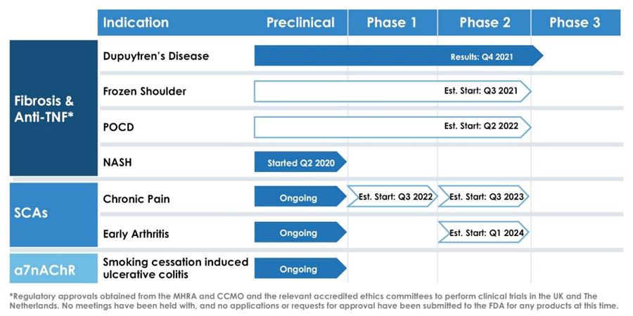 On May 24, 2021, the Company entered into another research agreement with Oxford (the “Fifth Oxford Agreement”), pursuant to which the Company will sponsor work at the University of Oxford to conduct a multi-center, randomized, double blind, parallel group, feasibility study of anti-TNF injection for the treatment of adults with frozen shoulder during the pain-predominant phase. As consideration, the Company agreed to make the following payments to Oxford: