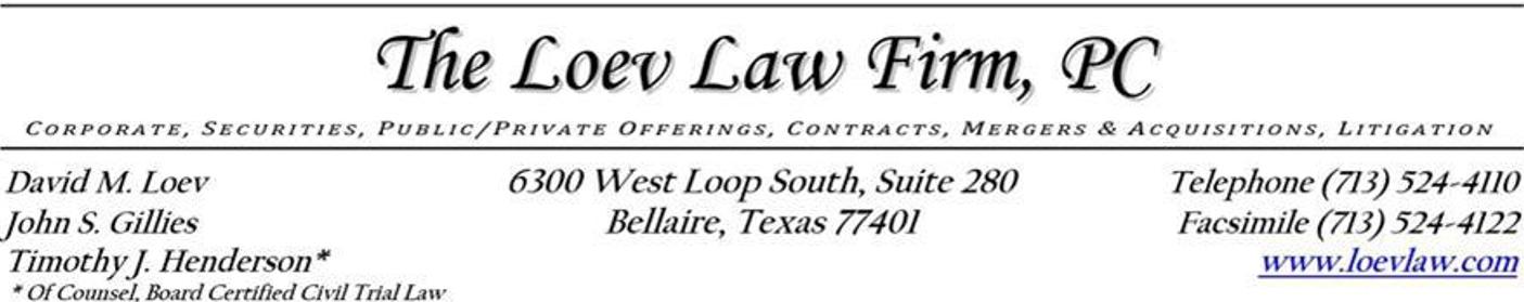 This opinion is expressly limited in scope to the Shares enumerated herein which are to be expressly covered by the referenced Registration Statement. Without limiting the generality of the foregoing, we neither express nor imply any opinion regarding the contents of the Registration Statement, other than as expressly stated above with respect to the Shares.