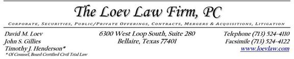 OPINION OF THE LOEV LAW FIRM, PC