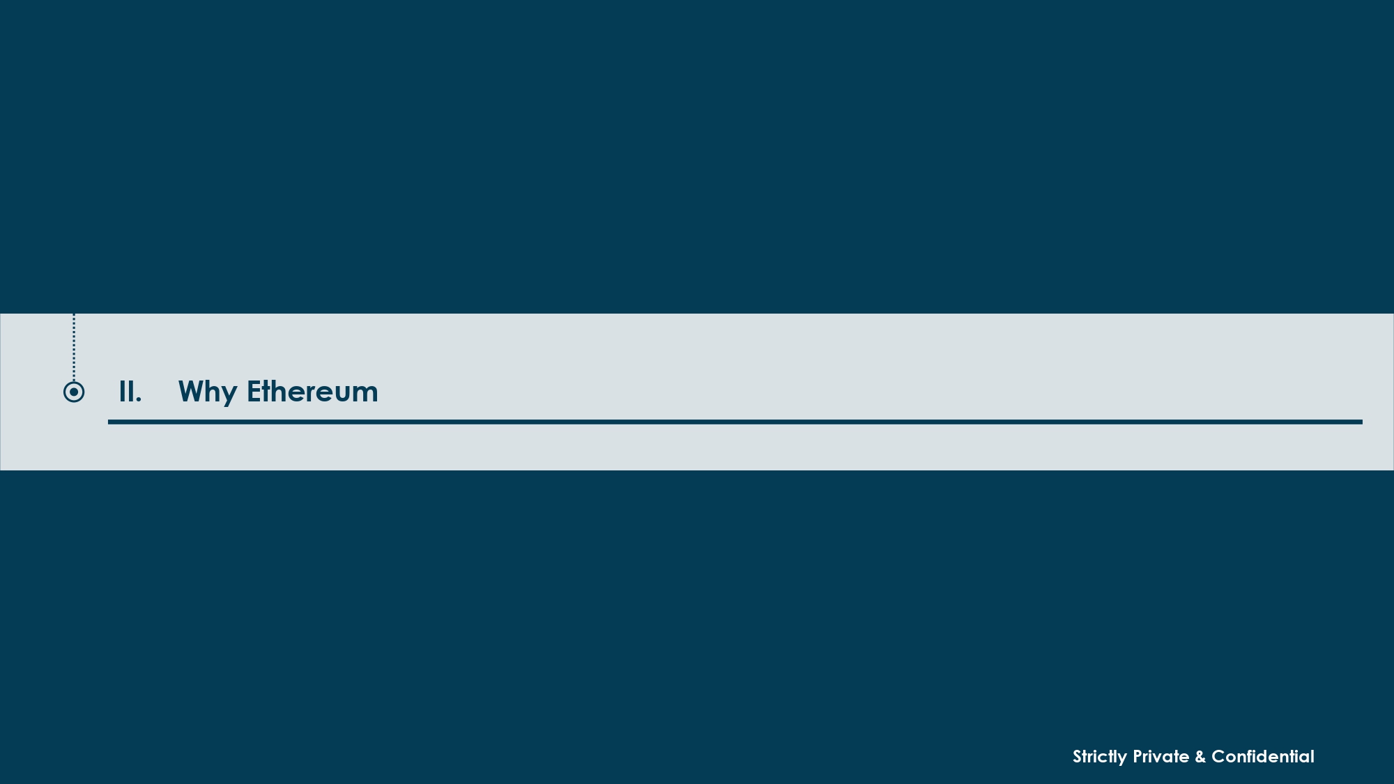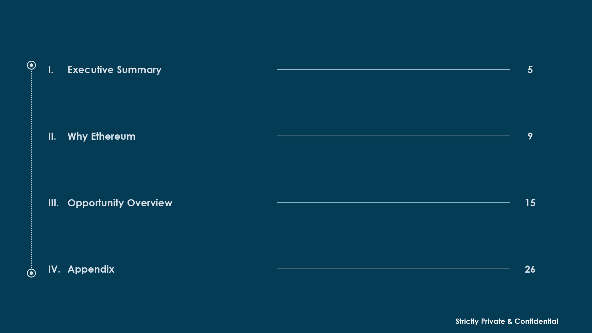 II. Why Ethereum 9 IV. Appendix 26 I. Executive Summary 5 III. Strictly Private & Confidential Opportunity Overview 15