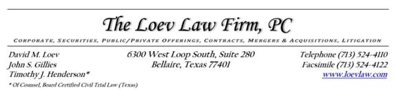 OPINION OF THE LOEV LAW FIRM, PC