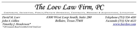 OPINION OF THE LOEV LAW FIRM, PC