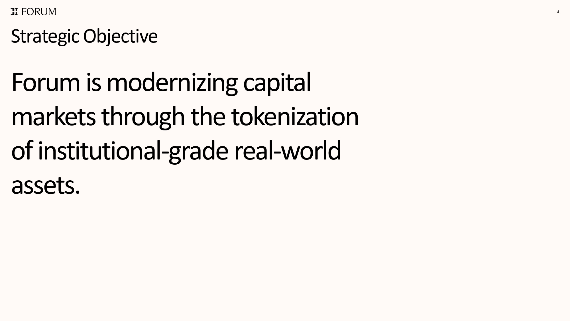 3 Strategic Objective Forum is modernizing capital markets through the tokenization of institutional - grade real - world assets.