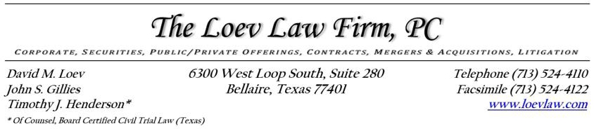 OPINION OF THE LOEV LAW FIRM, PC